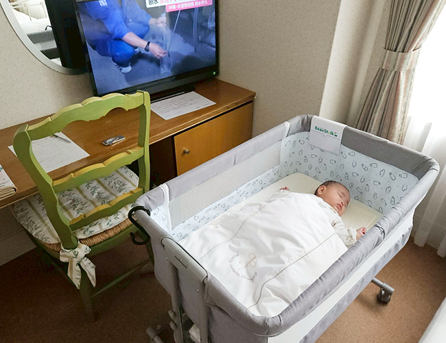 基本は母子同室でお母さんの育児技術の習得、母乳育児の支援を助産師が行います。